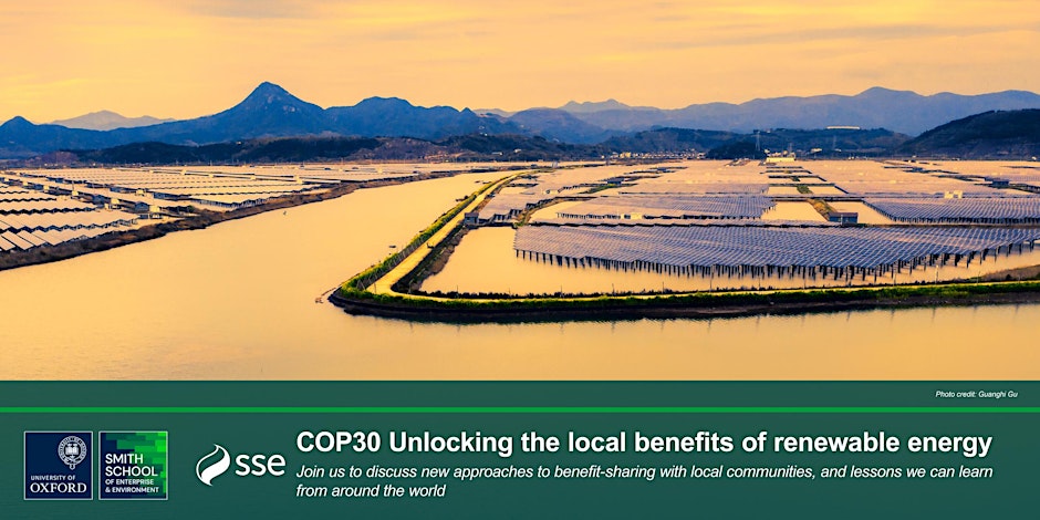 Renewable energy has many benefits – but these are not always appropriately distributed. Some jurisdictions are shifting from voluntary to mandated efforts to ensure renewables developers share benefits equitably with local communities. But how much is ‘enough’? And who pays? This event explores new research from the University of Oxford on the ways to unlock the local benefits of renewable energy. Join us and our expert panel to discuss new approaches and the lessons we can learn from different geographical contexts.