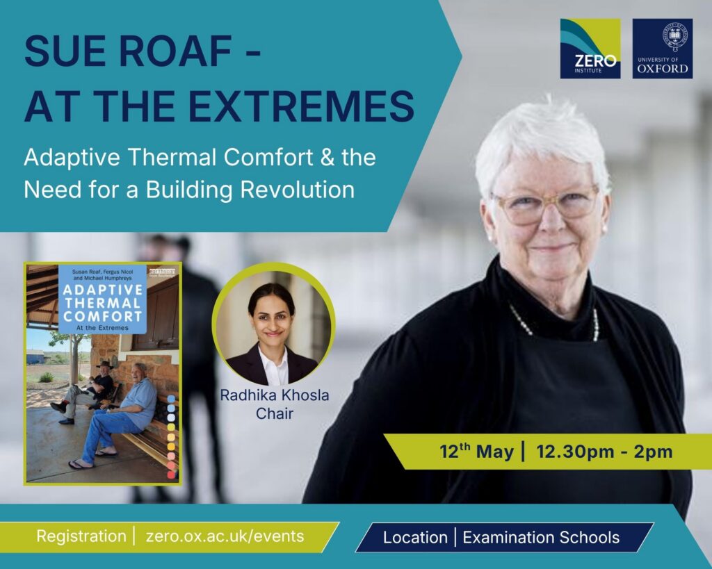 Architect, scholar and Professor of Architectural Engineering, Sue Roaf will discuss her new book with Dr Radhika Khosla, where she explores the “building revolution” needed to ensure that people can remain not only comfortable but thermally safe indoors in a heating future. The talk will be preceded by a complementary light lunch.